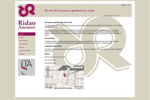Web de la Gestoria Ridao. Conté una secció dinàmica de notes d'interès. Web en dos idiomes.